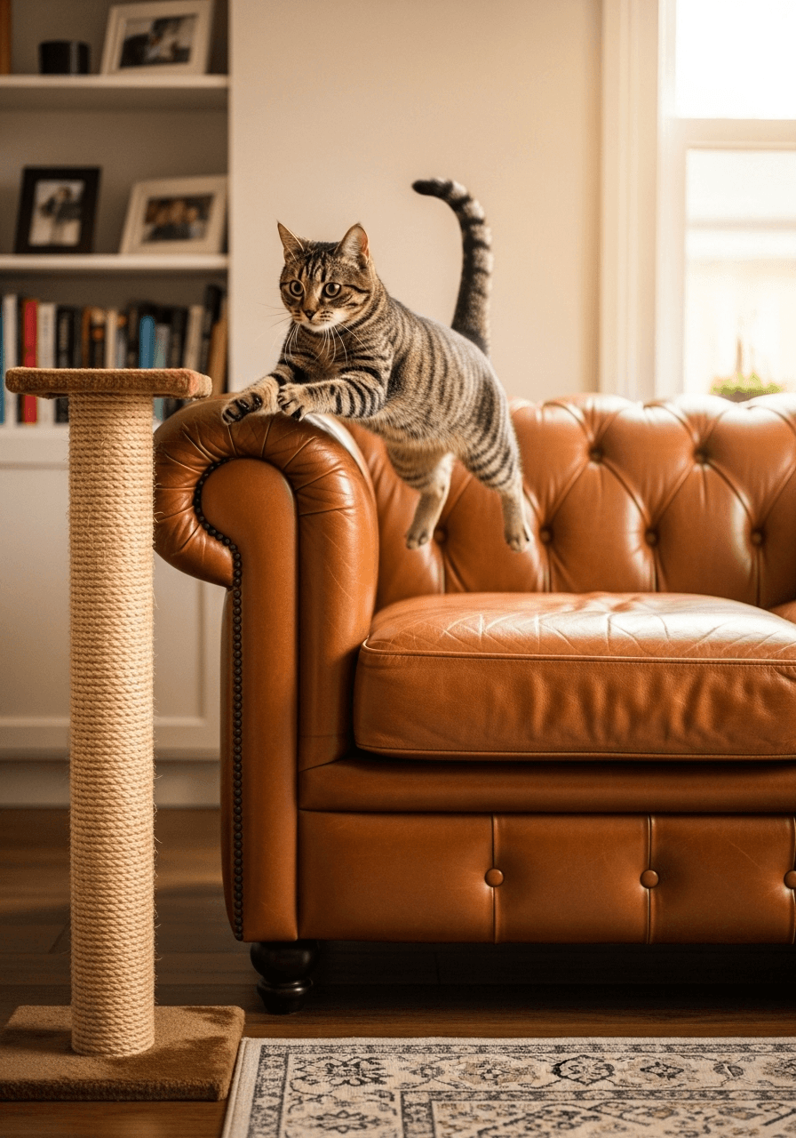 These simple steps greatly reduce the need for cat scratch repair on leather couches.